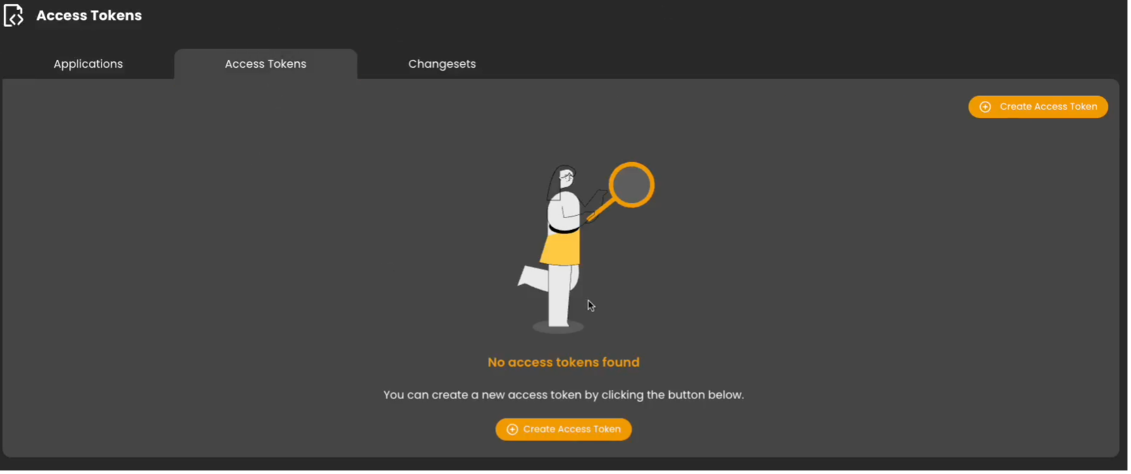 - On the ‘Access Tokens’ screen, on the top right-hand side corner of the screen, click the ‘Create Access Token’ button.