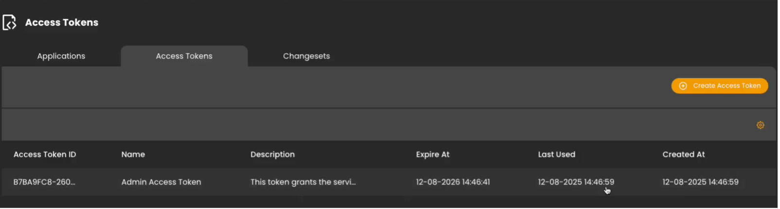- On the ‘Access Token’ screen, click on the access token that you wish to edit.